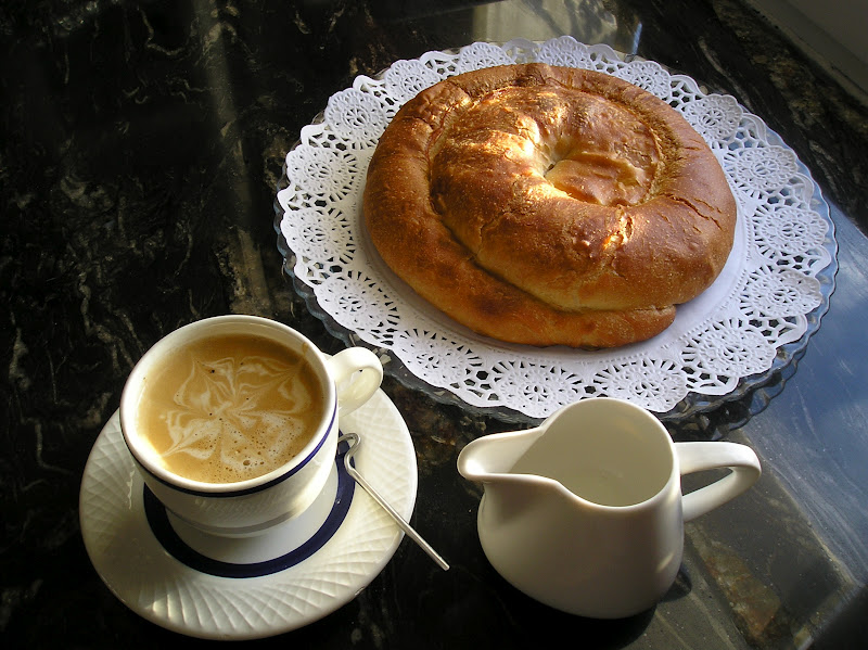 bizcocho de chocolate con masa madre y un tazón de cacao caliente. Y él no ha protestado por las “pseudo-ensaimadas”.
