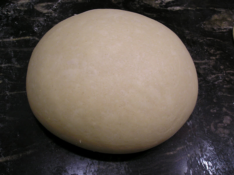 Engrasar la encimera y un rodillo con manteca de cerdo. Dividir la masa en cuatro porciones iguales. Trabajar con una porción, cubriendo las demás con film transparente para que no se sequen.