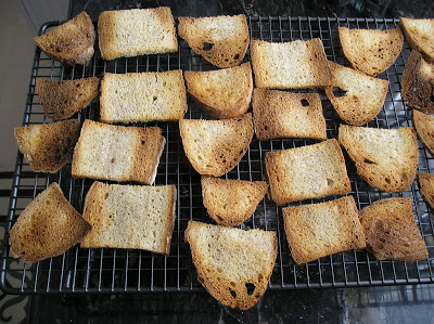 Y para poder decir con satisfacción que en casa no se tira nada, las pocas veces que se queda algo de pan casero atrasado… se recicla. Una veces es un pudding (un flan con pan, y rima), otras veces pueden ser estas tostas para el aperitivo.