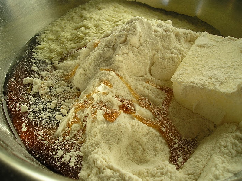 Pesar todos los ingredientes secos en un cuenco, reservando la levadura.