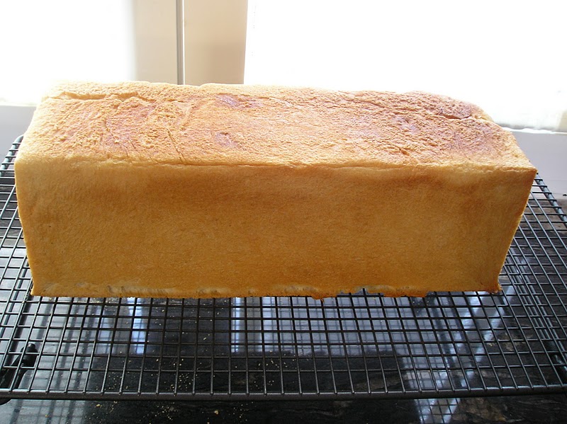 Ayer hice uno y lo cocí en un molde cerrado y con marcas 50 minutos a 200°. Cuando lo saqué del horno era ya la una de la madrugada y lo dejé fuera sin abrir para que se enfriara porque la primera vez lo quise abrir recien sacado del horno y toda la corteza se quedó pegada a la tapa por impaciente. Y eso que la había untado con mantequilla.