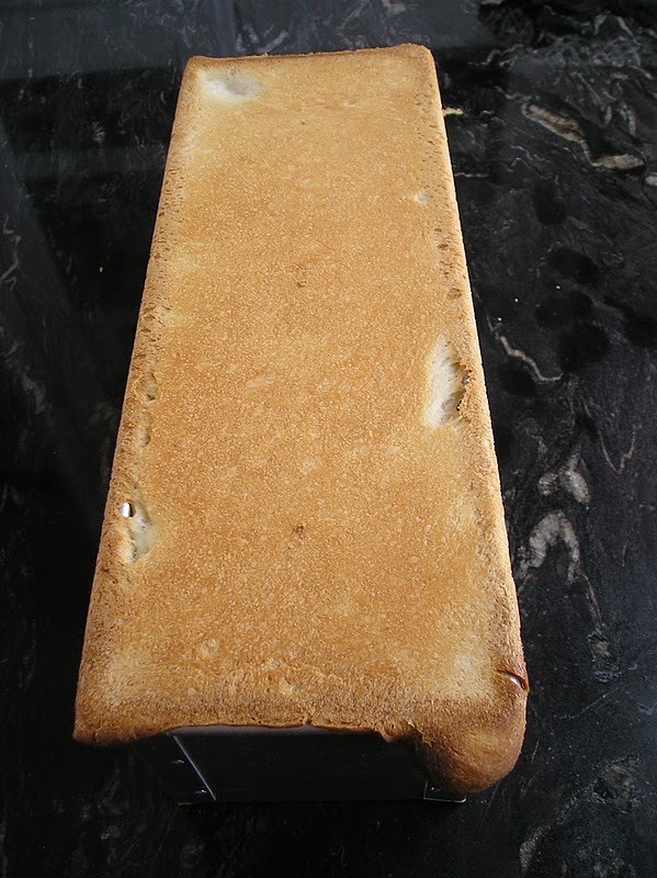Hay varias recetas de pan tierno para sandwich. Esta receta es fantástica… aunque quizás le sobraban 50 gramos de masa, porque, como podeis ver, al hornearlo rebosó ligeramente el molde. Y eso a pesar de que estaba bien tapado.
