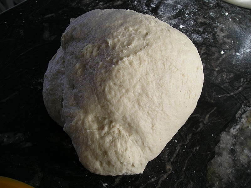 Añadir la leche y la levadura. Dejar desleirse esta última y luego mezclar bien todos los ingredietnes. Fuera del cuenco, amasar hasta obener una textura sedosa y homogénea. La masa debe superar la prueba de la membrana.