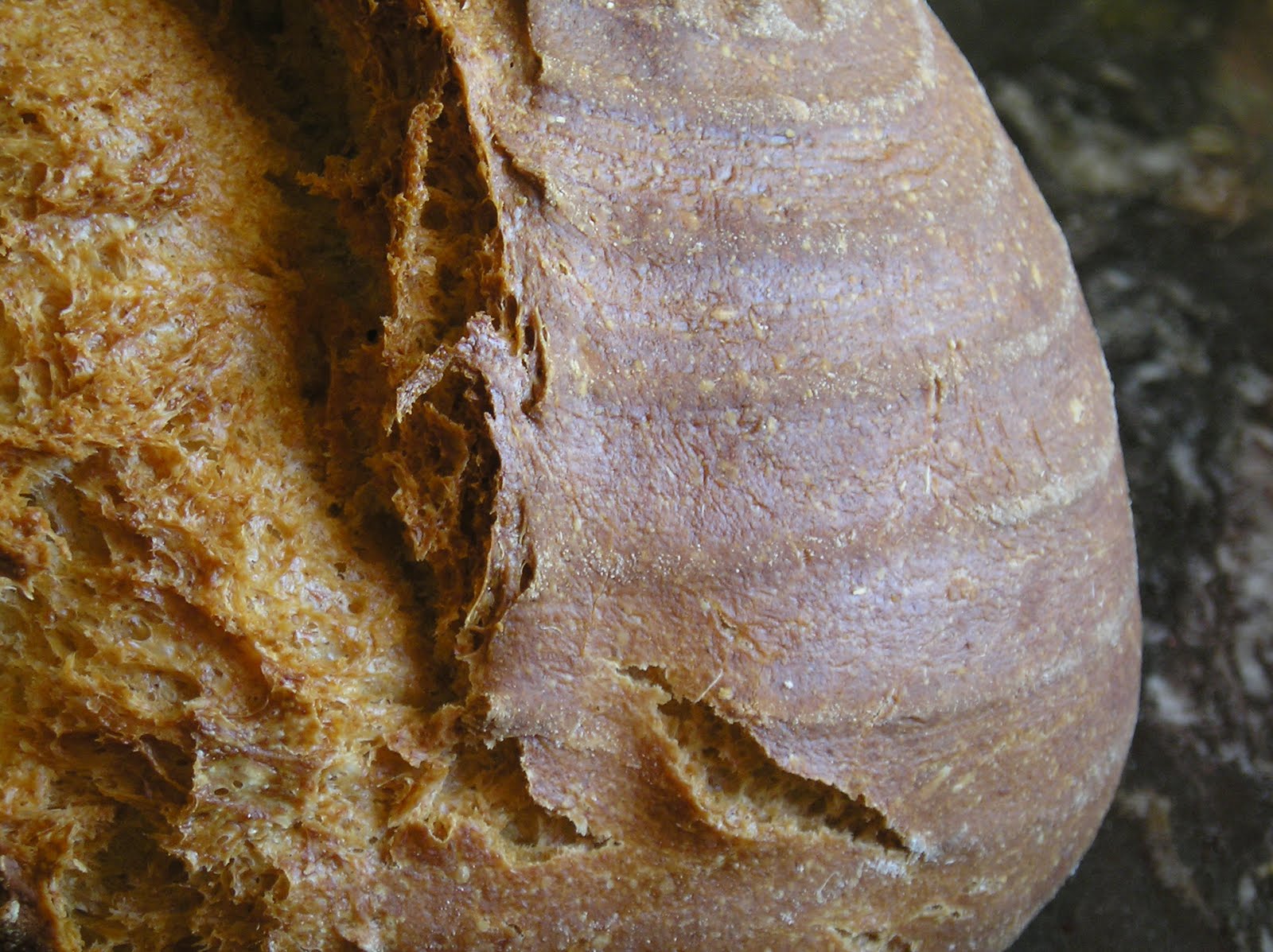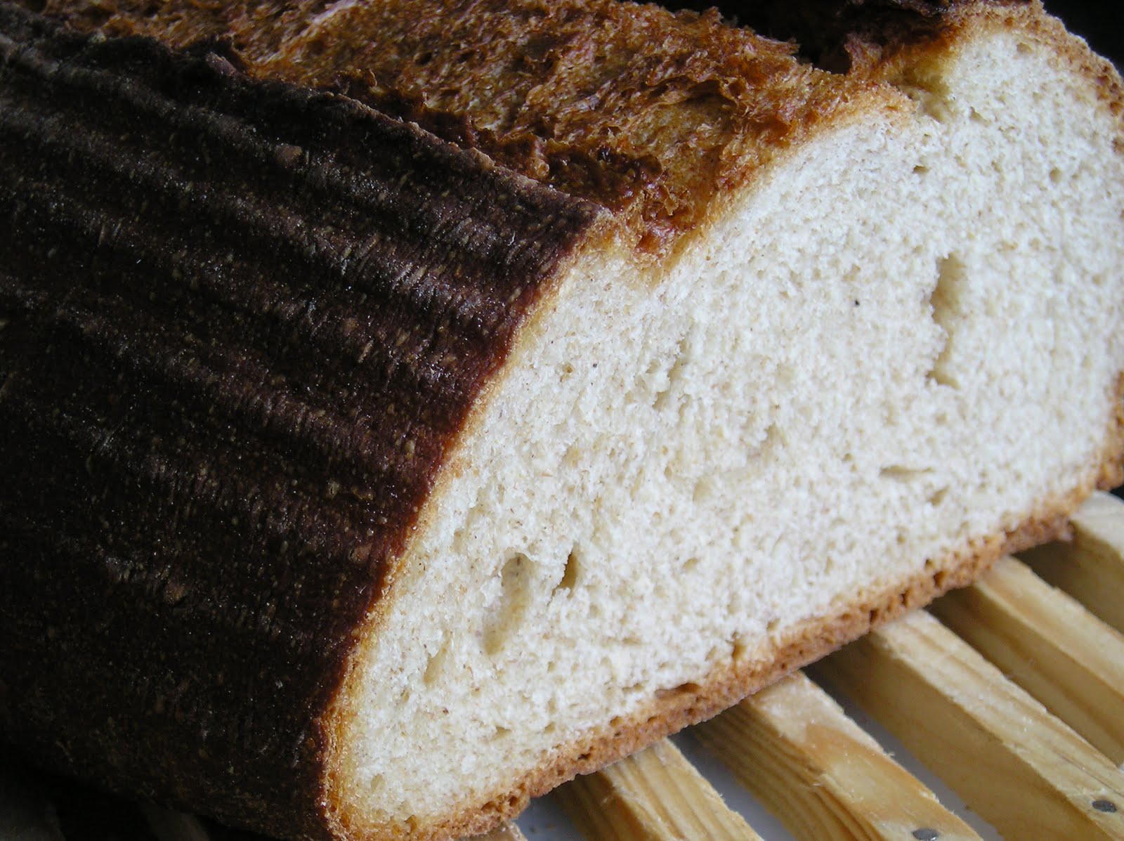 Cocer 10 minutos a 220º y reducir luego la temperatura a 200º durante 50 minutos. Sacar del horno y dejar enfriar sobre una rejilla. Este pan mejora si se deja reposar 12 horas antes de cortarlo.