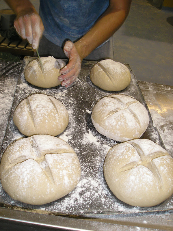 El greñado se puede ver en esta foto. El resultado tras el horneado se muestra más abajo con los panes de centeno.
