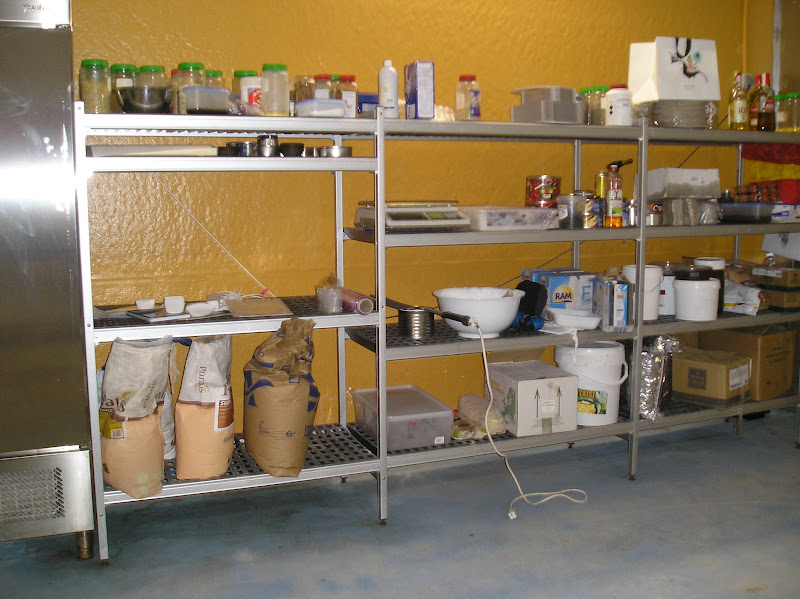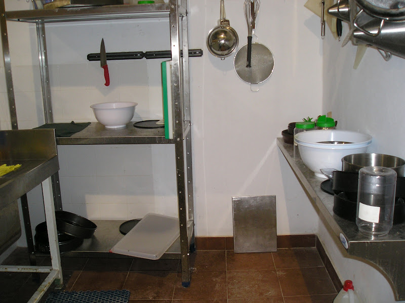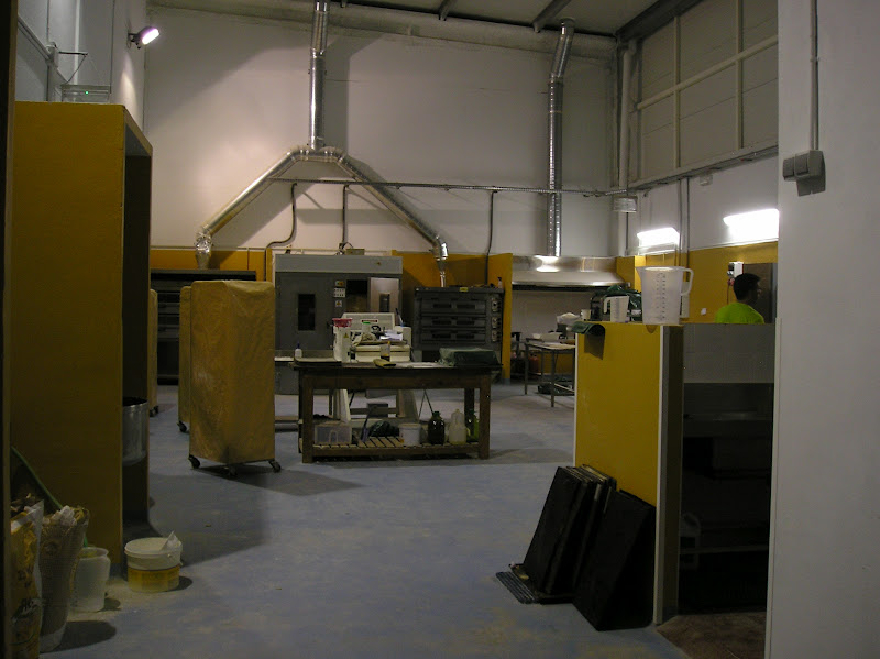 Lo primero que me sorprendió gratamente fue la amplitud del espacio de trabajo: el calor era inevitable, no sólo por el propio horno y la habitación de calor para las masas que iban algo lentas, sino porque la noche fue una de las más calurosas del verano.