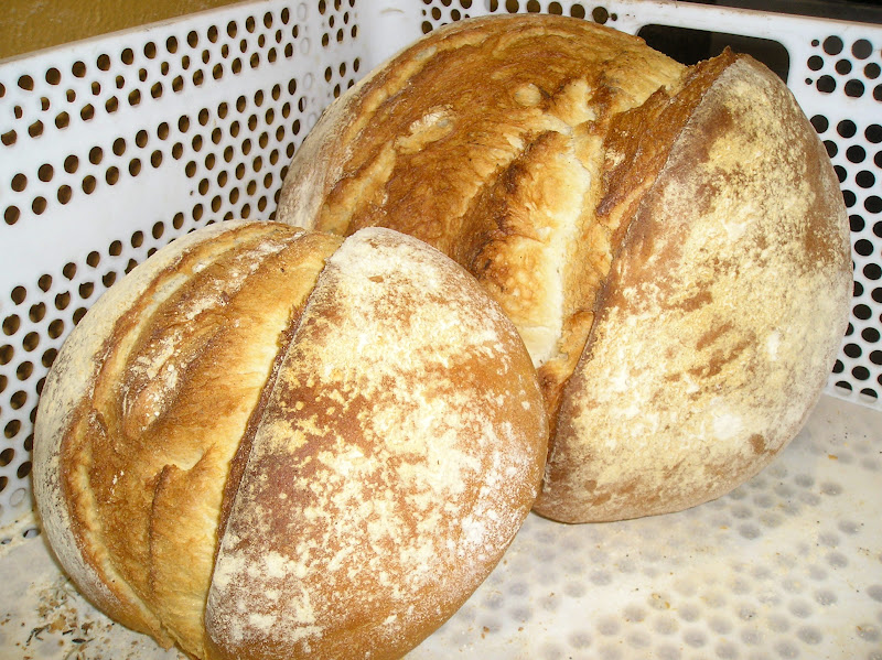 El mayor de ellos es el que abría esta crónica, y que degustamos en el desayuno, en casa, al día siguiente y que aquí se ve recién horneado (a la izquierda) y recién cortado (a la derecha).