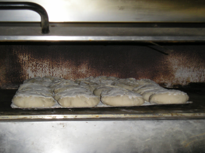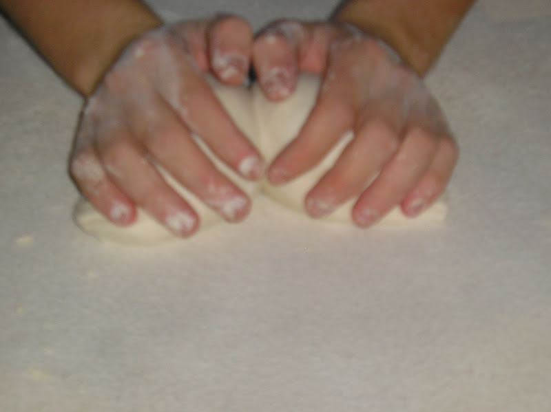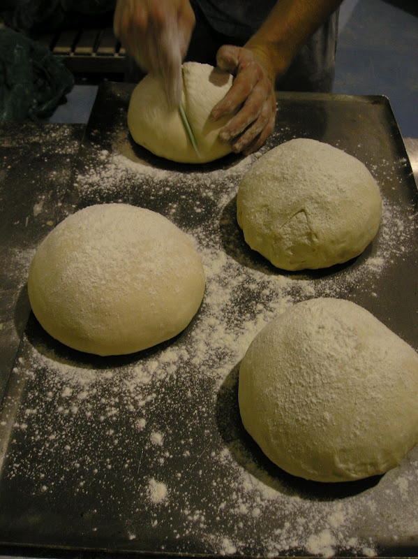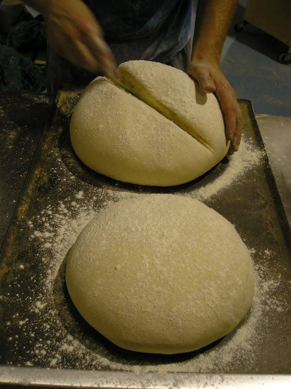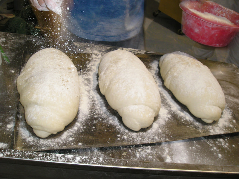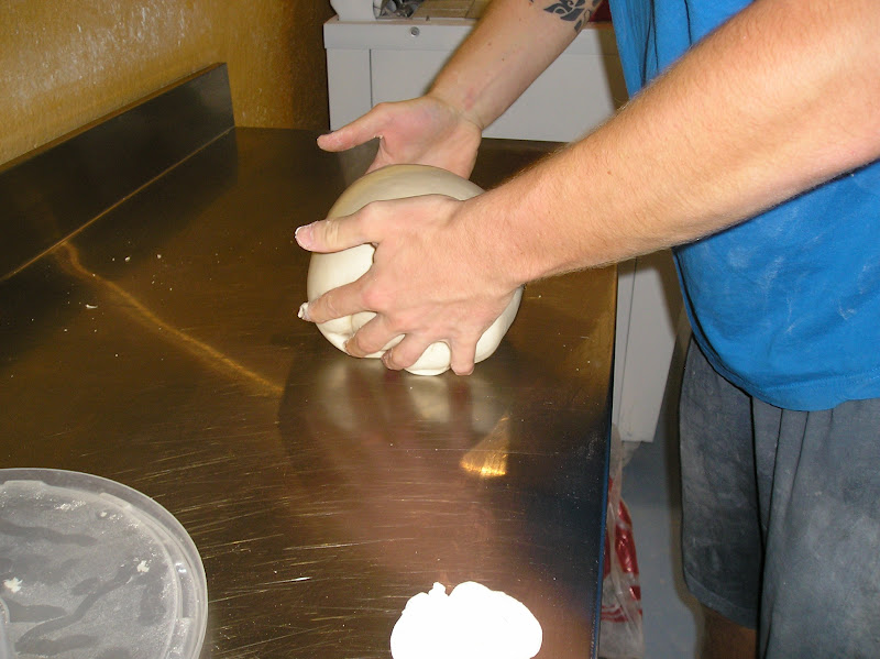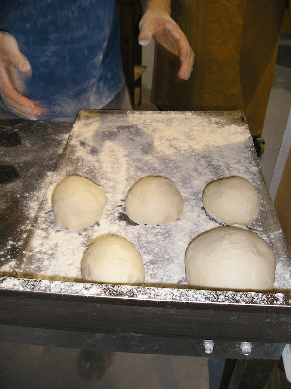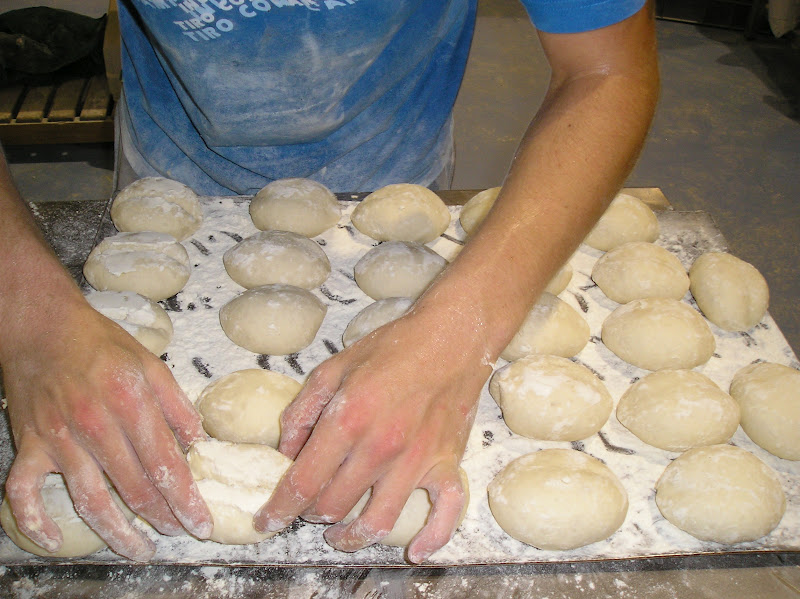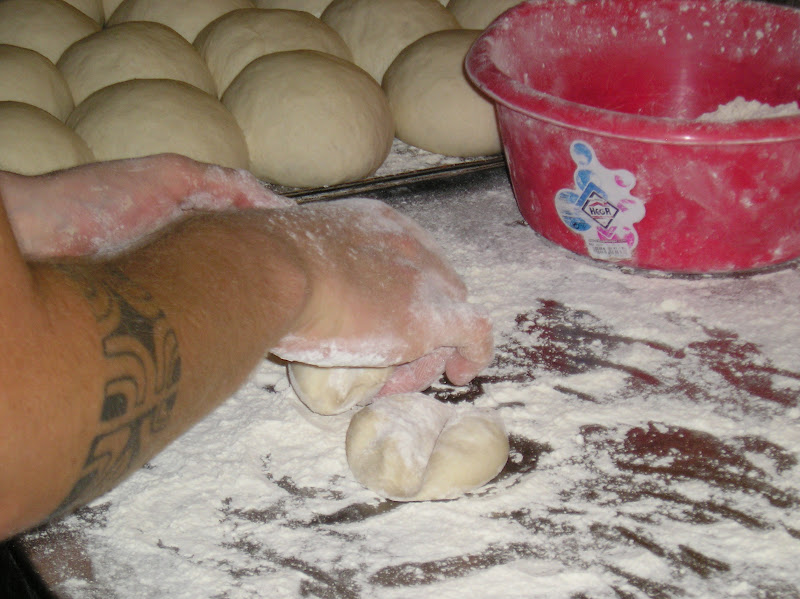 Se pesan y forman en bola las piezas y se les da un reposo largo (casi una fermentación pues dura al menos 45 minutos en un ambiente muy caluroso). Se forman enharinando generosamente, hendiendo con el canto de la mano el centro de la bola, enharinando de nuevo y colocando boca abajo la hendidura para que durante la fermentación no desaparezca.