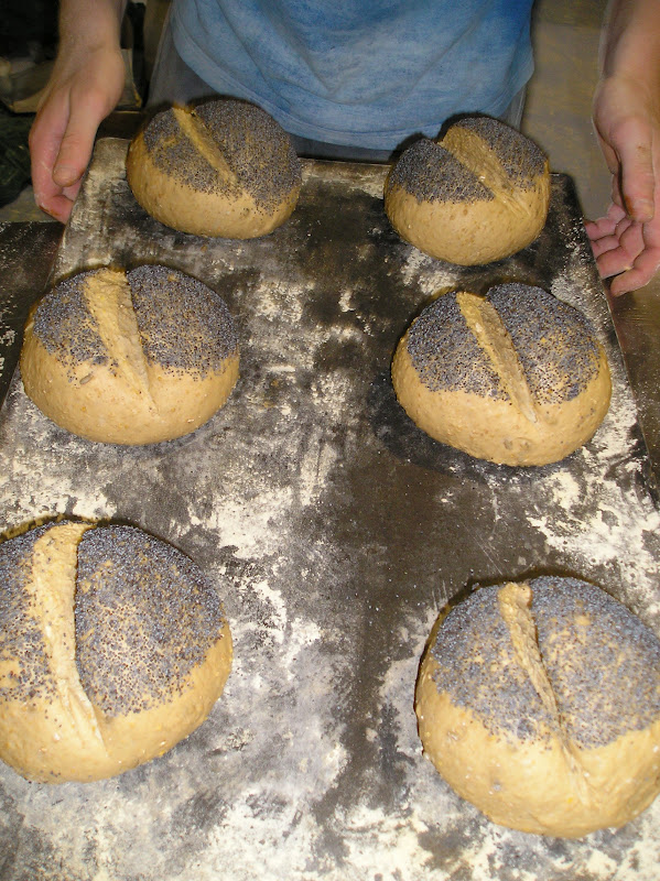 En las siguientes fotos, los panecillos pequeños recién bañados en semillas (sésamo unos y amapola otros), en su segunda fermentación.