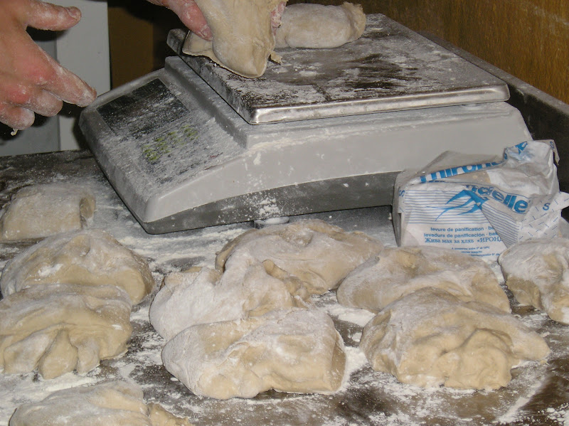 A partir de esta masa se elaboran panes de centeno de 350 gr. y de 230 gr. más o menos, con su primera fermentación larga, el pesado y preformado y el formado en boule.