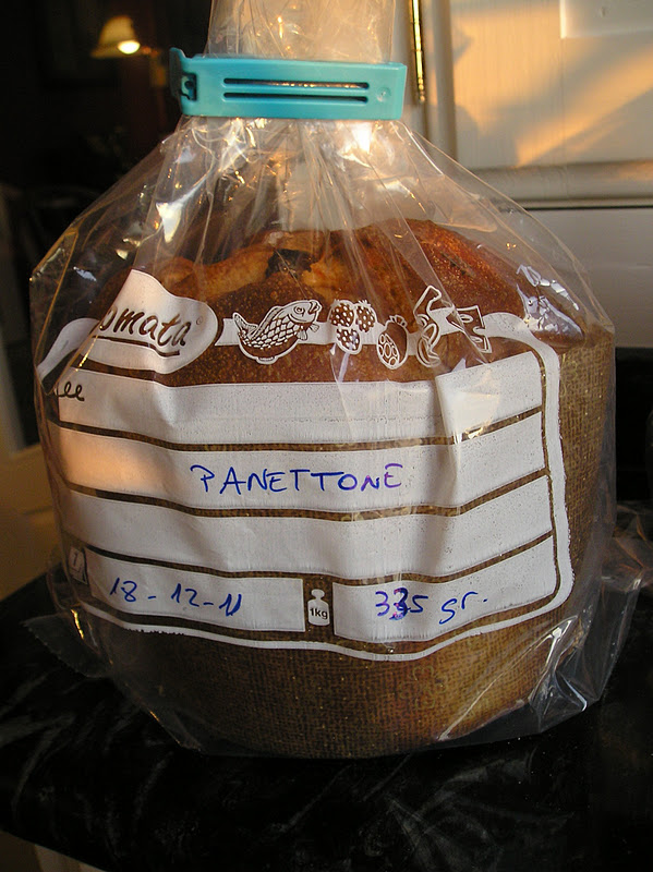 Dado que quería hacer un panetone de lento desarrollo no quería seguir las recetas al uso para hacerlo con levadura (panetones rápidos). Decidí combinar un prefermento de roscón de Reyes y una receta de Panettone, así que en la receta de El Foro del Pan del Panettone hecho con masa madre (receta del mes de Diciembre de 2011) sustituí la MM por el prefermento envejecido. El envejecimiento de dos días en nevera le daba el toque ligeramente ácido de una masa vieja o de una MM muy suave.