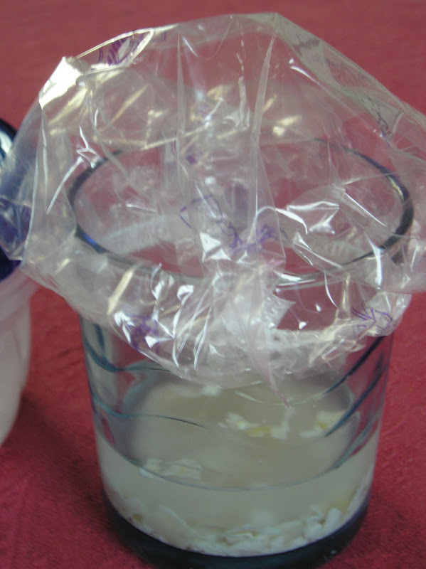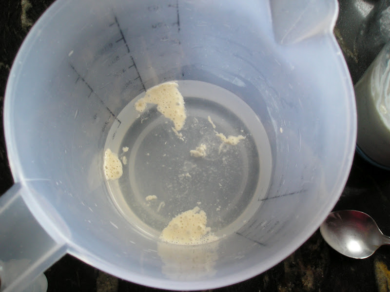 En uno de los vasos, añadí sólo agua: exactamente 60 ml. de agua. Mezclé, tapé y dejé reposar 12 horas.