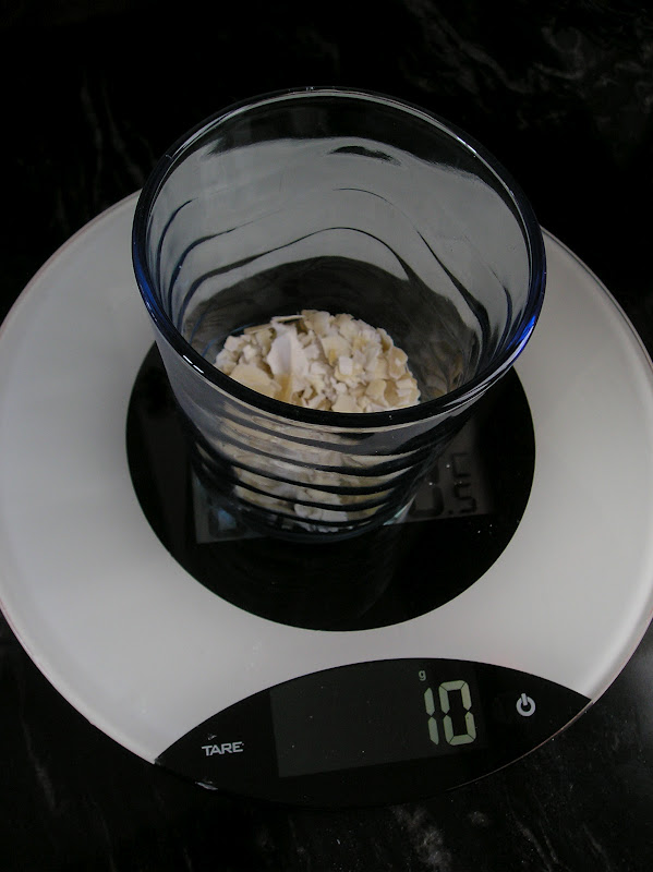 En primer lugar, decidí hacer dos masas de arranque con procesos ligeramente distintos,. En ambos casos, opté aleatoriamente por utilizar 10 gr. de copos de MM seca. Los pesé en sendos vasos.