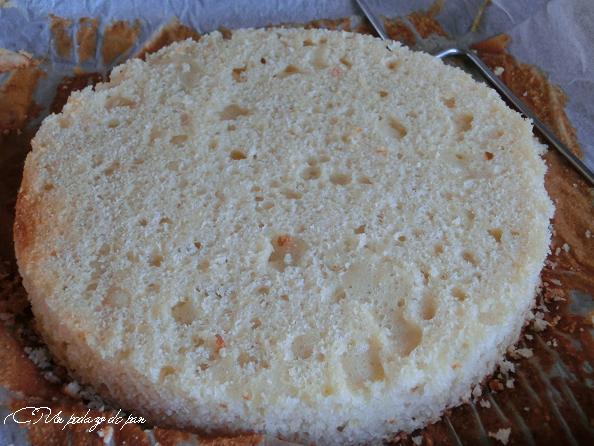 Se pueden colocar las capas de bizcocho alternas y al partir queda impresionante (una capa oscura y una clara). Pero como en la clase de mi hija hay niños que no les gusta el bizcocho de limón, montado así era mucho más fácil de separar una parte de otra en las porciones.