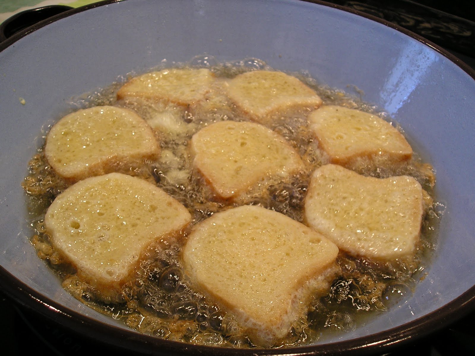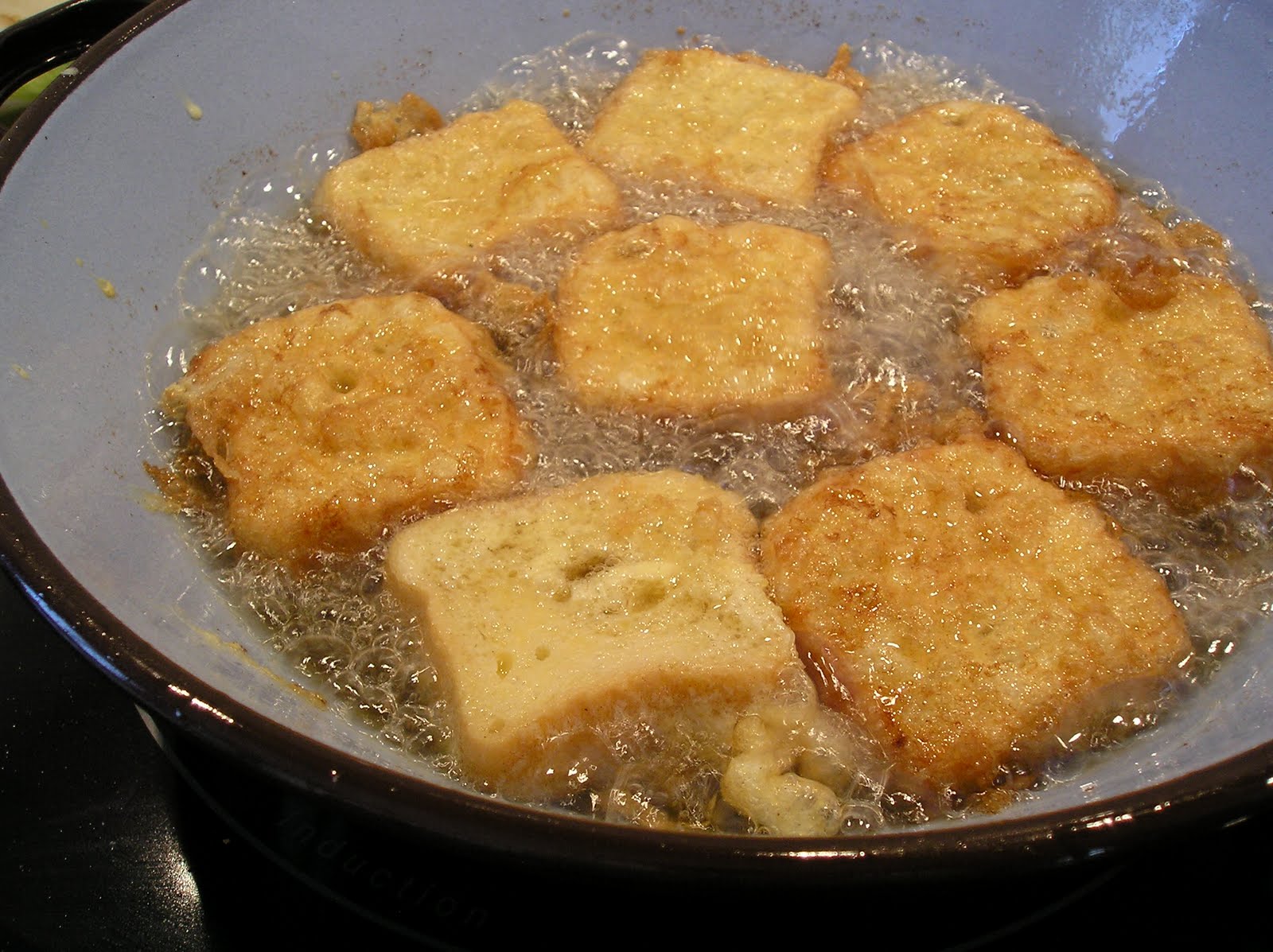 Yo aprendí a hacerlas con mi suegra, que siempre las ha hecho en casa, cantando y riendo, como es su ser. Y creo que por eso su receta es tan rica: es una receta alegre como ella misma. Su receta lleva vino blanco, aunque otras personas las hacen con leche. A mí me gusta la mezcla de sabores del vino y la miel: me parece exquisita, si el vino es bueno. Ella solía hacer las recetas con pan de molde de rebanada grande.