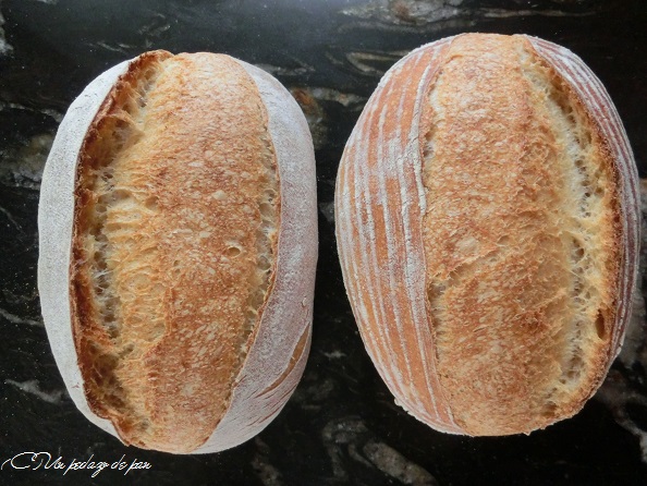 Y la masa madre sólida compensa con creces la extensibilidad de esta harina. Y junto a ello, algo de zumo de naranja que puse en lugar de una parte de agua. Pero creo que esto último fue innecesario, visto el buen volumen de las piezas. Eso sí, para estas piezas 100% trigo duro preferí no prefermentar el 50% de la harina sino tan sólo el 33%, y aumentar a cambio un poco la levadura seca.