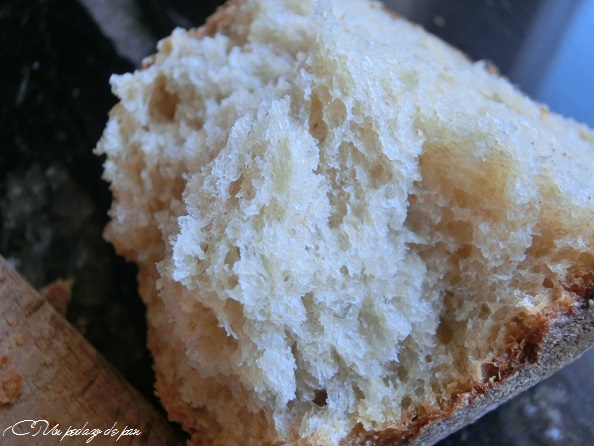 La verdad es que en un plano corto, uno podría llegar a pensar que es casi, casi, un bizcocho. Y es que esta vez, añadí un 3% de AOVE para suavizar el trigo duro y darle elasticidad (que le falta a esta harina).