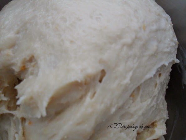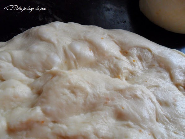 - He sustituido el prefermento sólido de otras ocasiones por un poolish al que dejo fermentar un par de horas y luego refrigero en nevera de 12 a 24 horas más. Creo que el uso del prefermento líquido (bueno, con harina de fuerza no queda realmente líquido sino muy viscoso) facilita la extensibilidad de la masa, lo cual ayuda tanto en el formado del roscón como en su crecimiento sin roturas en el horno. Claro está que a cambio hay que usar buenas harinas de fuerza.