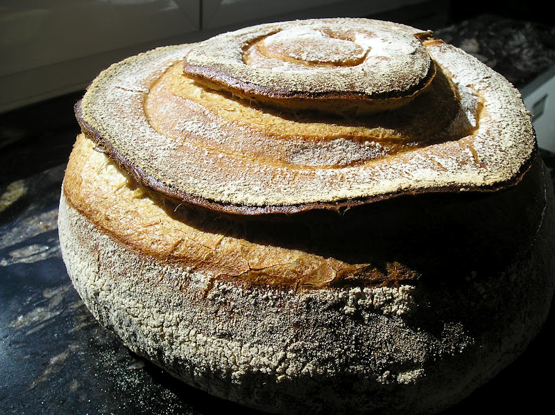 Esa es la magia de la técnica del cordón… el cordón está superpuesto durante la segunda fermentación a la masa principal. Eso hace que se unan ligeramente (por la humedad de la masa). Y esa unión es un "punto débil" en el formado del pan. El pan se abre en el horno por los puntos débicles, de forma que si no le damos buena tensión a veces se nos desgarran las hogazas por donde no queremos.