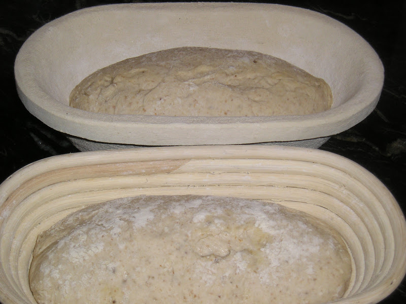 Preformar como una bola y dejar reposar 15-30 minutos. Formar luego en un rulo y colocar en sendos banetons o cuencos enharinados.