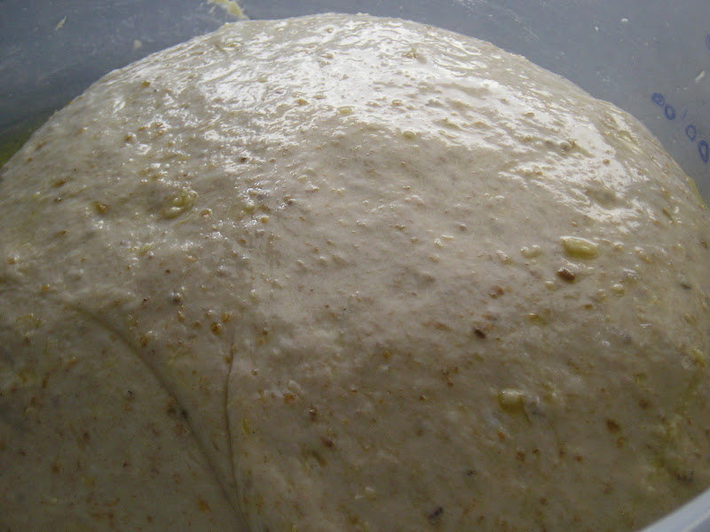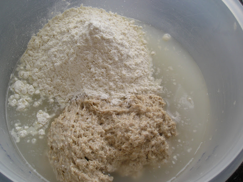 Y entrando ya en harina, no he podido resistirme a hacerle cambios a la receta que me proponía M. Como ella misma dice, la receta del blog de SmittenKitchen no es exactamente la misma que ella preparaba. Tampoco yo la he seguido al pie de la letra. Esta receta incluye un prefermento que yo, como M. sugiere, ha sustituido por mi MM de centeno.