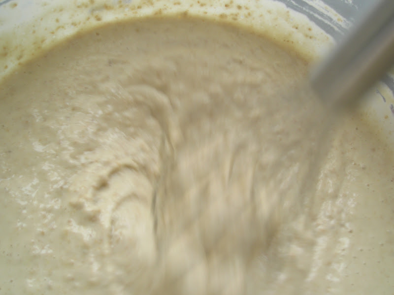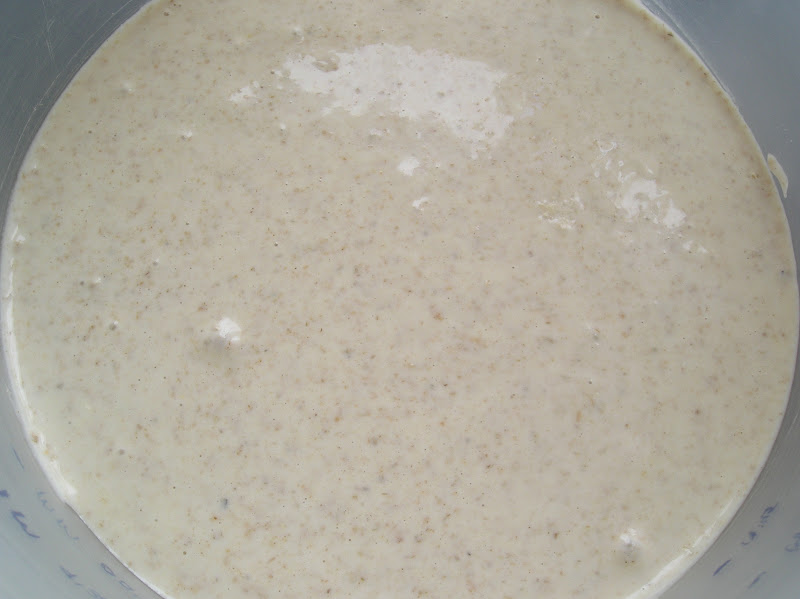 Batir hasta que se mezclen bien todos los ingredientes. Tapar y dejar reposar dos horas para que comience a fermentar.
