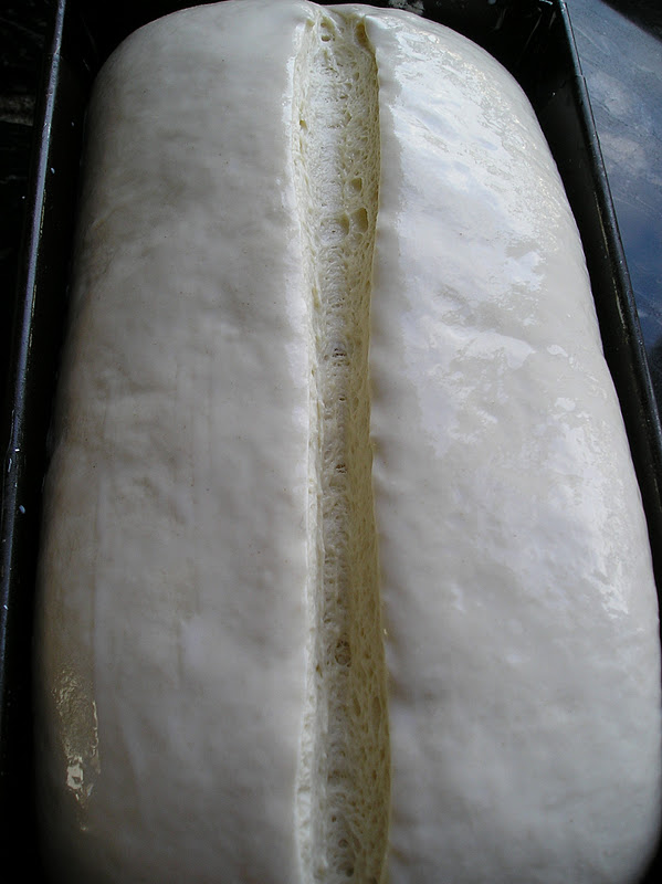 La absorción de agua ha sido buena aunque tan sólo utilicé una hidratación total del 65%. La masa se comportó muy bien en el amasado y en la fermentación, muy larga, pues la masa soportó 24 horas entre amasado y fermentaciones (mixta en encimera y refrigerada). A ello contribuyó -seguro- la MM que estoy utilizando (gracias a MMF y a Bea, de La Cocina de Babette), aunque le añadí un poco de levadura seca dada la cantidad de masa, la temperatura tan fría de estos días en Sevilla y la grasa añadida de esta masa hecha con leche en lugar de agua.