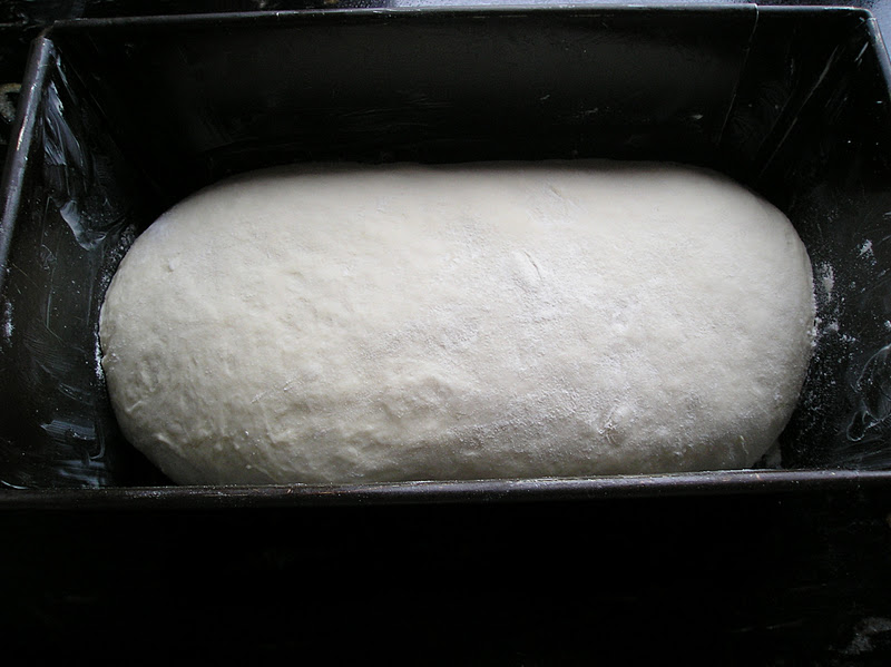 Se coloca en un molde engrasado: la masa debe quedar a la mitad o algo por debajo de la mitad de la altura del molde. Se deja fermentar varias horas.