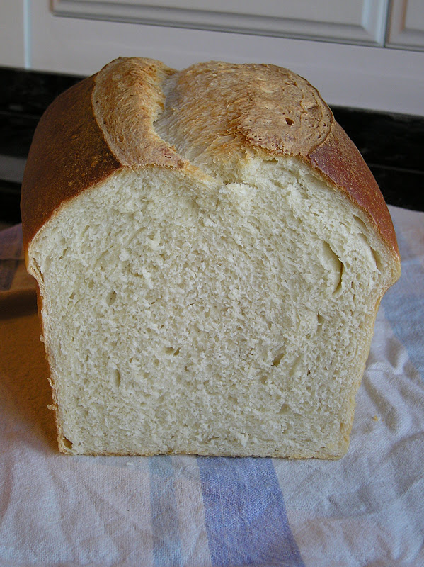 El aspecto del pan ha sido regio. Lo he horneado a media tarde, para que se enfriara y estuviera en su punto para la cena. Estaba deseando que llegara mi costilla para probarlo juntos. Y no nos ha defraudado: una delicia, una miga tierna y esponjosa, densa para soportar buenos rellenos. Así que puedo recomendar tanto la receta como la harina.