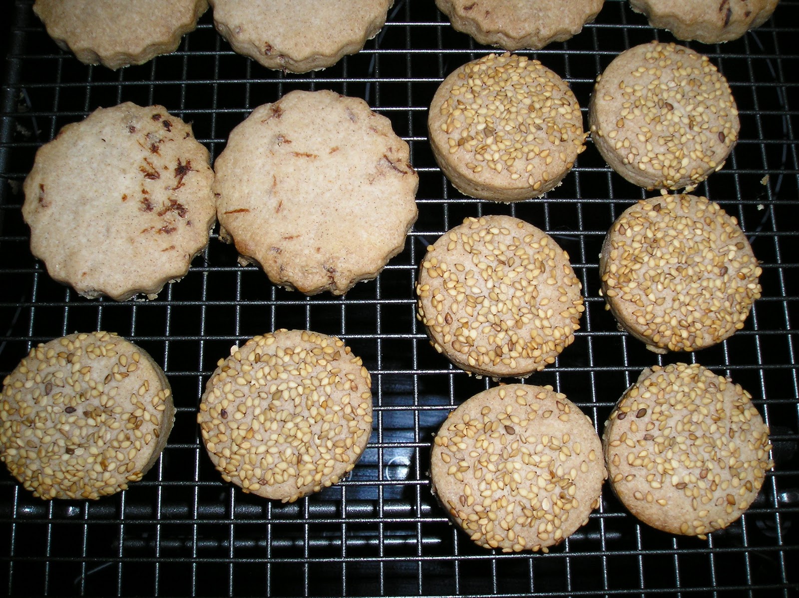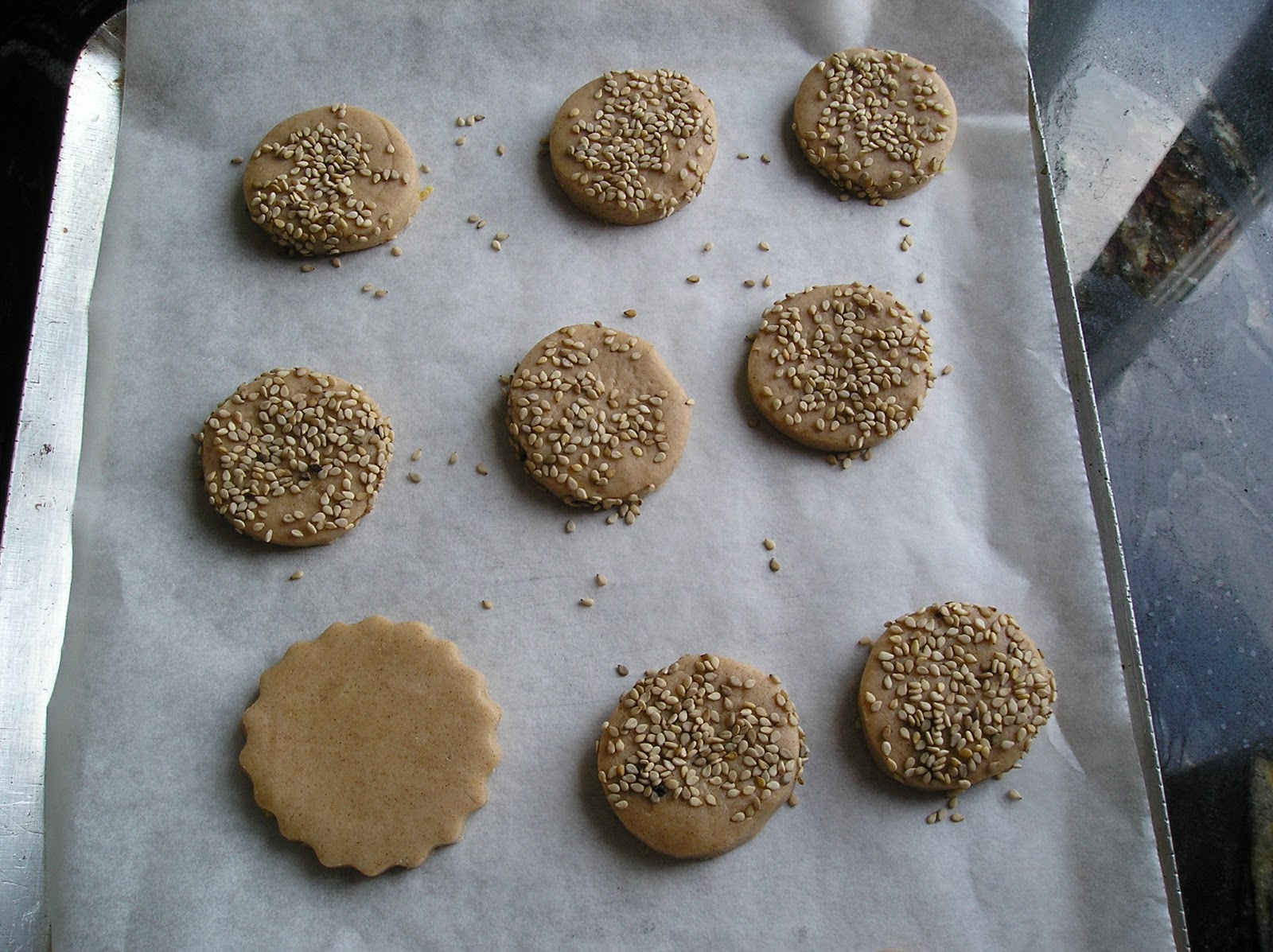 Para acabar los mantecados con ajonjolí (sésamo), se reboza la cara superior en un plato con las semillas ANTES de hornear. De esa forma se tuestan al cocer los mantecados en el horno y se potencia su sabor.