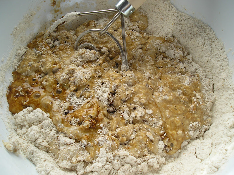 Esta vez he vuelto a la receta raíz -la que aprendí a preparar con Andrew Whitley, ligeramente diferente en proporciones que la de su libro-. Pero como no podía ser de otra manera le he hecho alguna modificación pequeña.