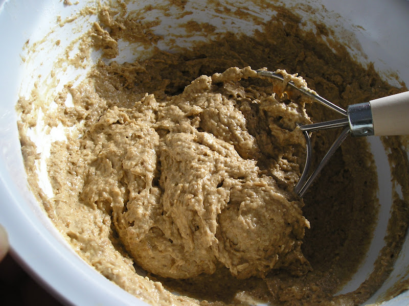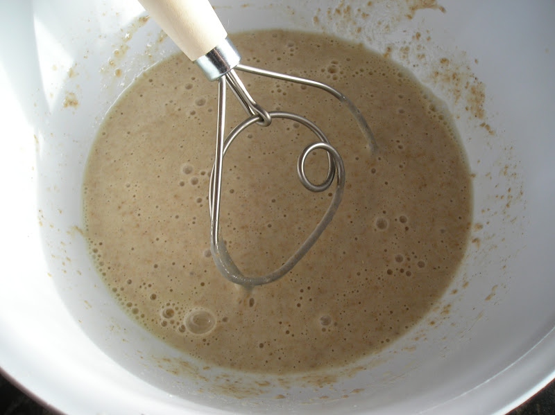 Se puede batir la masa con una cuchara de palo, con la mano o con este batidor específico para masas de centeno. Es verdaderamente útil.