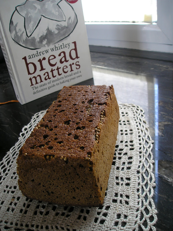 Nuestra amiga ha vivido intermitentemente en Alemania, y entre otras cosas se ha traído un pasión por estos panes. Y hacía mucho tiempo que no preparaba un Borodinski. En esta ocasión, además, tenía semillas de cilantro cosechadas el otoño pasado en casa, por lo que el resultado podía ser verdaderamente artesanal.