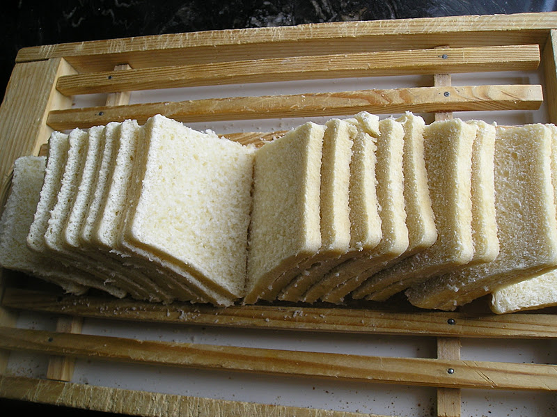 En el caso del pequeño pan de molde, dejar “asentar” durante dos días, bien Rebanar muy fino.